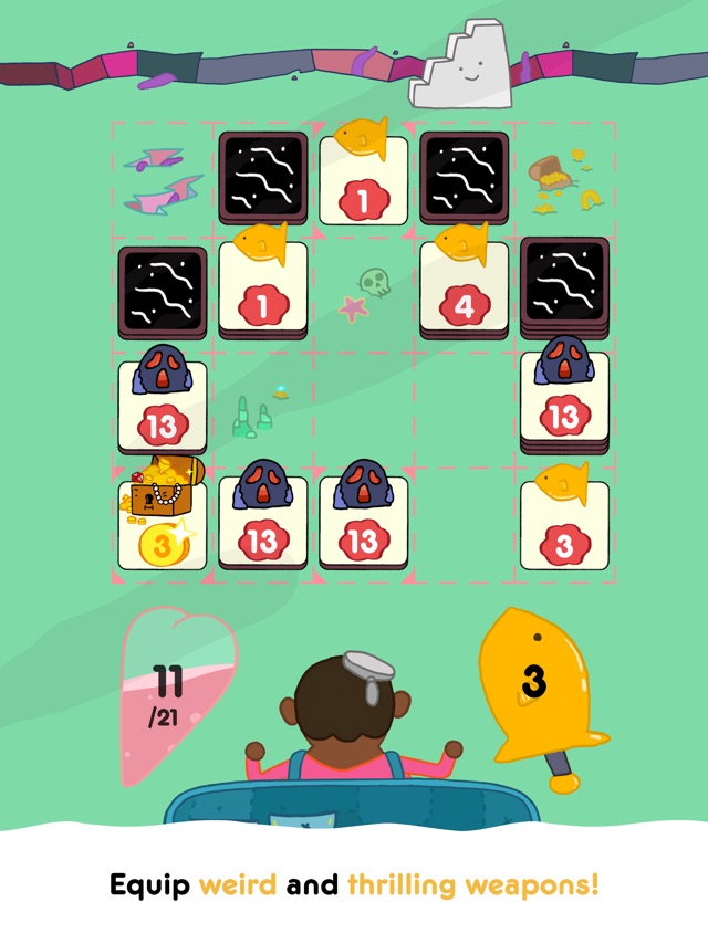 Sometimes the cards you see are fearful monsters, fantastic treasures, or weapons you really really need, and you can take any of them... but there's a catch! You must finish what you start.