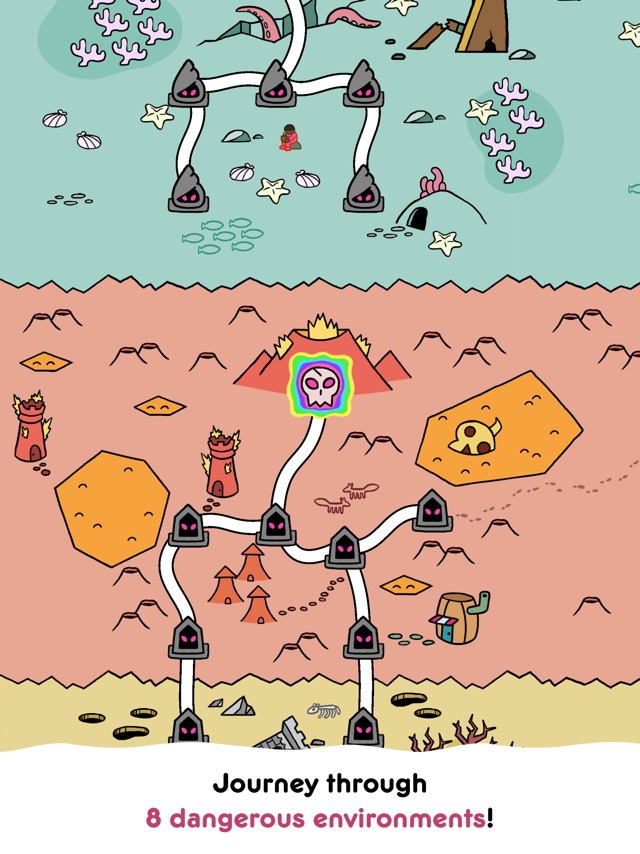 It's the streamlined design you'd expect from me, but this time layered with tons of stuff, just so much stuff! Well over a hundred unique monsters, spells, and upgrades. And art! Oh my goodness — the art! Beautiful incredible hand animated art from Pendleton Ward, Nelson Boles, Andrew Onorato and Evan Borja. Plus an incredible soundtrack from Stemage.